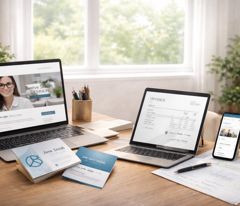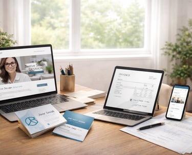 We provide everything you need to get up and running with confidence, from a polished website, professional email setup with branded signatures, and eye-catching business cards and flyers, to a complete branding and marketing solution that builds visibility from day one.